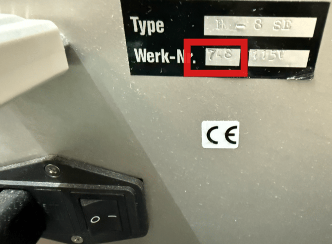 The serial number of the instrument is typically found on a sticker located on the side of the instrument near the power plug.