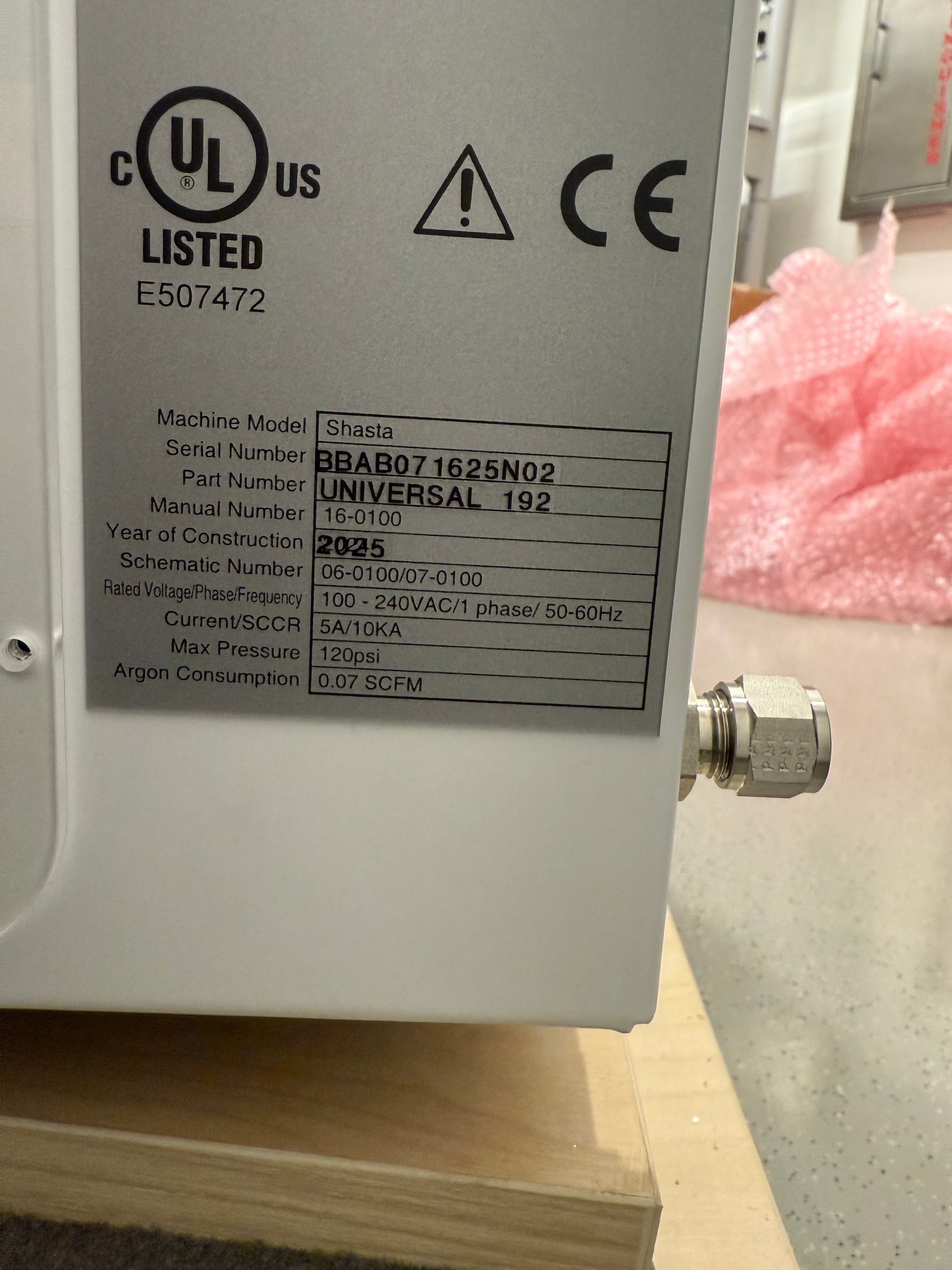 On Shasta Systems the label is usually on the back of the instrument: