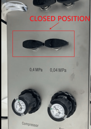Once the lines are dry, close the Argon and Compressor Pressure Turn Valves