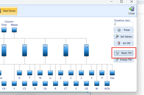 Run the “Trityl Monitor Wash” function inside the Manual Control Screen
