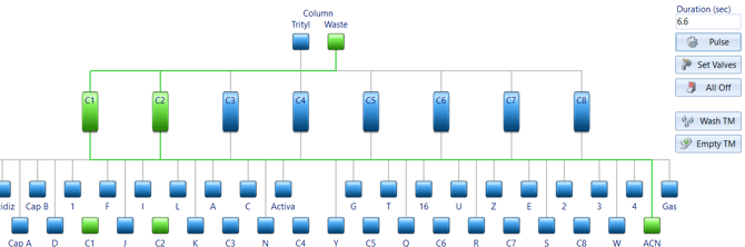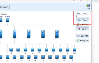 - Prime ACN through each Column to identify which column waste line you are looking at and to prime the line. A 1-2 second "Pulse" is usually sufficient.