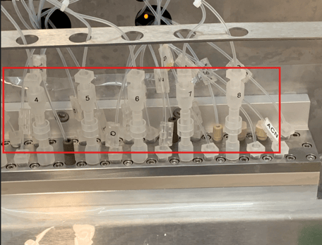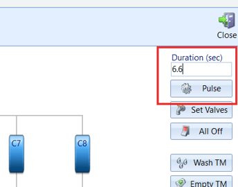 With the line now fully primed and securely in the collection vial, fire each valve manually for 6.6 seconds.