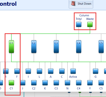 Validate that all reagent lines, waste lines, and trityl monitor functions are operating as expected