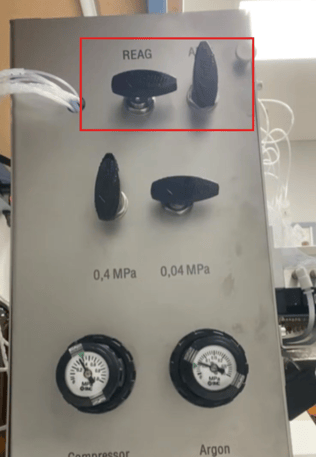 - 💡 Tip: One gas manifold is usually for reagents; the others are for amidites.