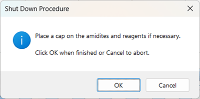 8. Prompts the user to recap reagents and amidites