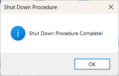 The software notifies the user that the shutdown procedure is complete
